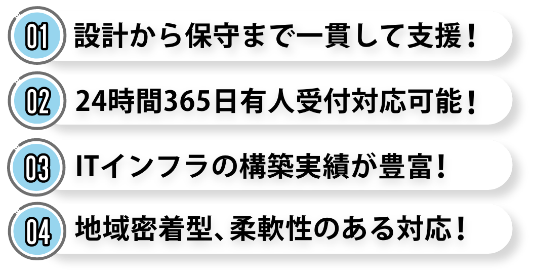 要件定義、設計、構築、運用まで対応します。