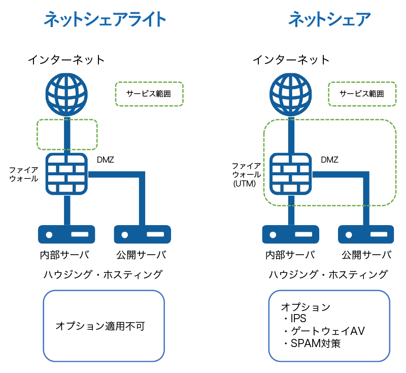 (回線+ファイアウォール機能)共用UTMを利用して、ファイアウォール機能を提供します