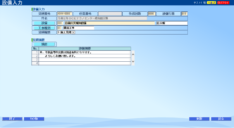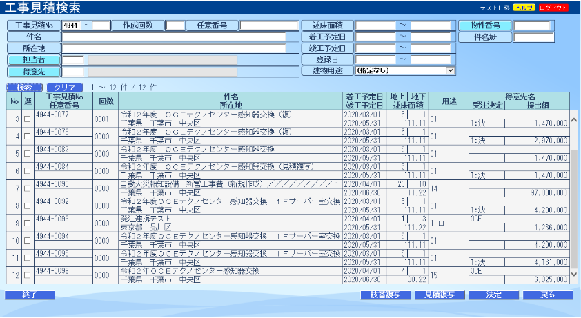 工事見積システムで作成した見積物件のみが、受注決定システムの対象となります。 データ修正発生時は、見積データとの整合性を図る為、工事見積システムにて修正後、再度受注を行います。 |
